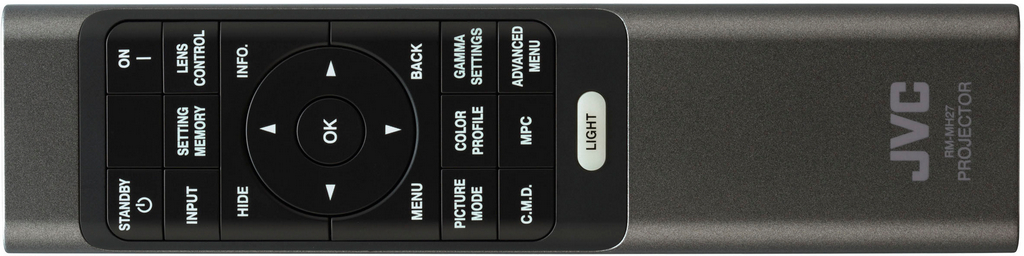 Пульт дистанційного керування досить компактний. Кнопки розташовані логічно та пульт зручно тримати і легко використовувати однією рукою. Внизу — кнопка підсвічування пульта, все ж таки ним переважно користуються в темряві. Є також кнопки швидкого доступу до ключових елементів меню, таких як режими зображення, профіль кольору, налаштування гами, CMD, MPC та розширені меню.