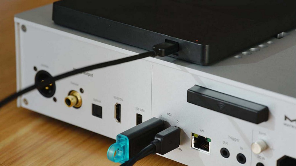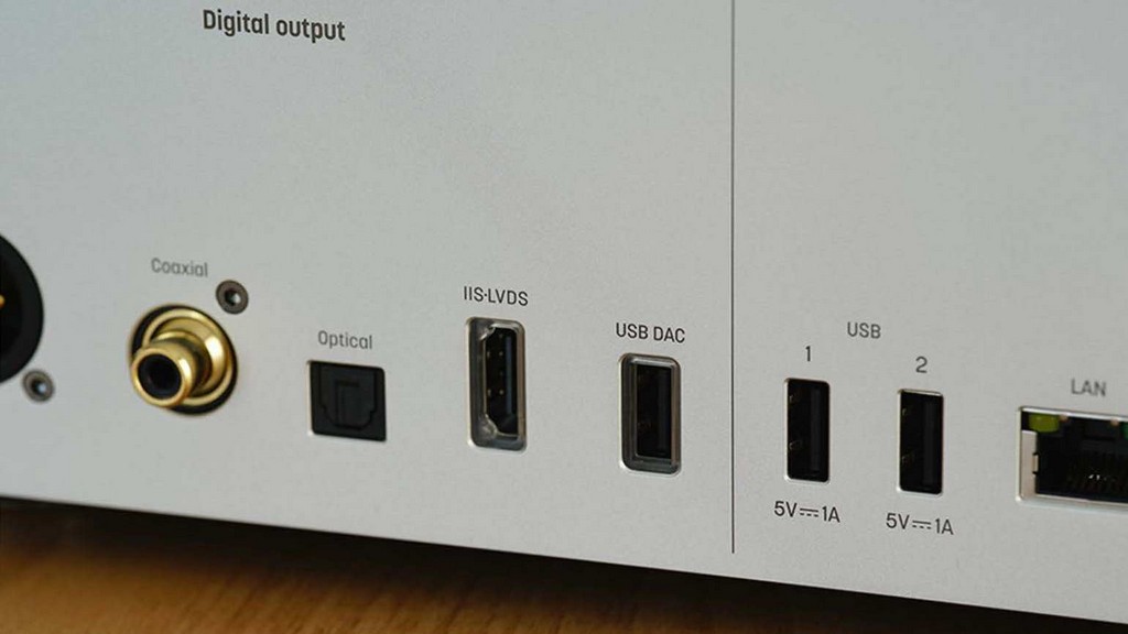Два порти USB-A дають можливість одночасного підключення USB-накопичувача і CD-приводу. При підключенні CD-приводу компакт-диски можна відтворювати безпосередньо, а також швидко копіювати їх в цифрові музичні файли і зберігати на пристрої. Під час відтворення та копіювання CD метадані альбомів автоматично витягуються з Інтернету.