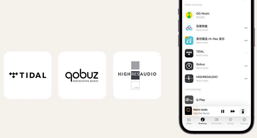Онлайн-трансляція: TIDAL, Qobuz, Spotify, HIGHRESAUDIO, RadioParadise, vTuner.