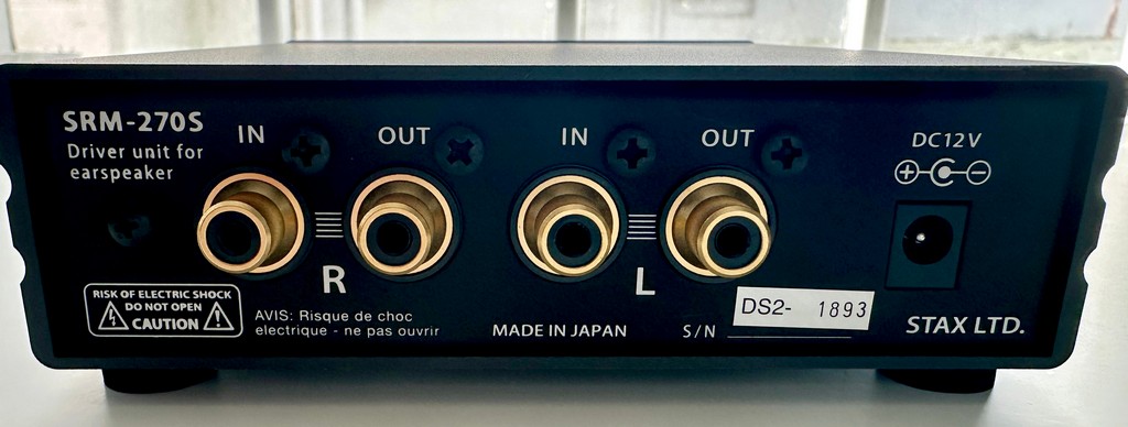 Корпус SRM-270S виконаний практично повністю з алюмінієвого профілю, що означає, що вся конструкція є радіатором. На задній панелі розташовані несиметричні стереофонічні RCA-входи і виходи (дивно, що вони згруповані як L і R, а не in і out) і роз'єм для підключення до мережі.