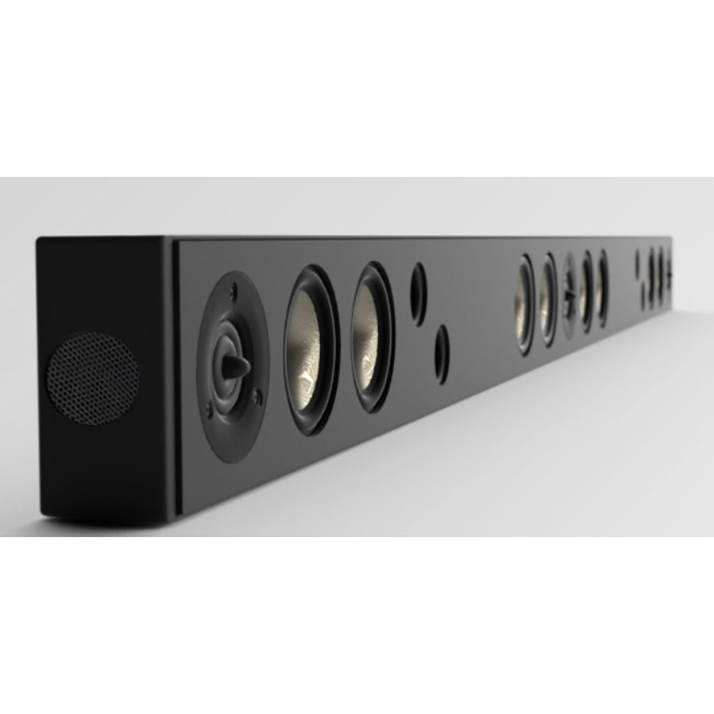 - Корпус з екструдованого алюмінію, анодованого в чорний колір, забезпечує створення акустичної системи, яка буде працювати навіть з найтоншими дисплеями без шкоди для продуктивності.